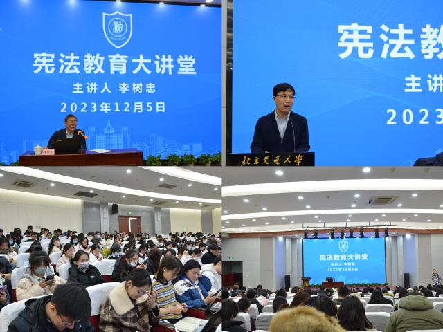 李树忠教授的报告以“弘扬宪法精神,推进宪法全面实施”为主题,围绕“宪法是人类法治文明的最高表现”、“认识宪法的中国性”、“宪法实施的新成就”、“把宪法全面实施提高到一个新水平”四方面内容,对我国的宪法进行了深刻的讲解与分析。他在报告中指出,“宪法在治国理政中起到了定海神针的基础性保障作用,是治国理政的基础性依据,也是治国理政的最高依据”,“富强的国家诉求始终是中国宪法的底色所在”,这些鲜明的观点有助于师生更加清晰地了解和把握宪法的重要地位和中国宪法的特色。