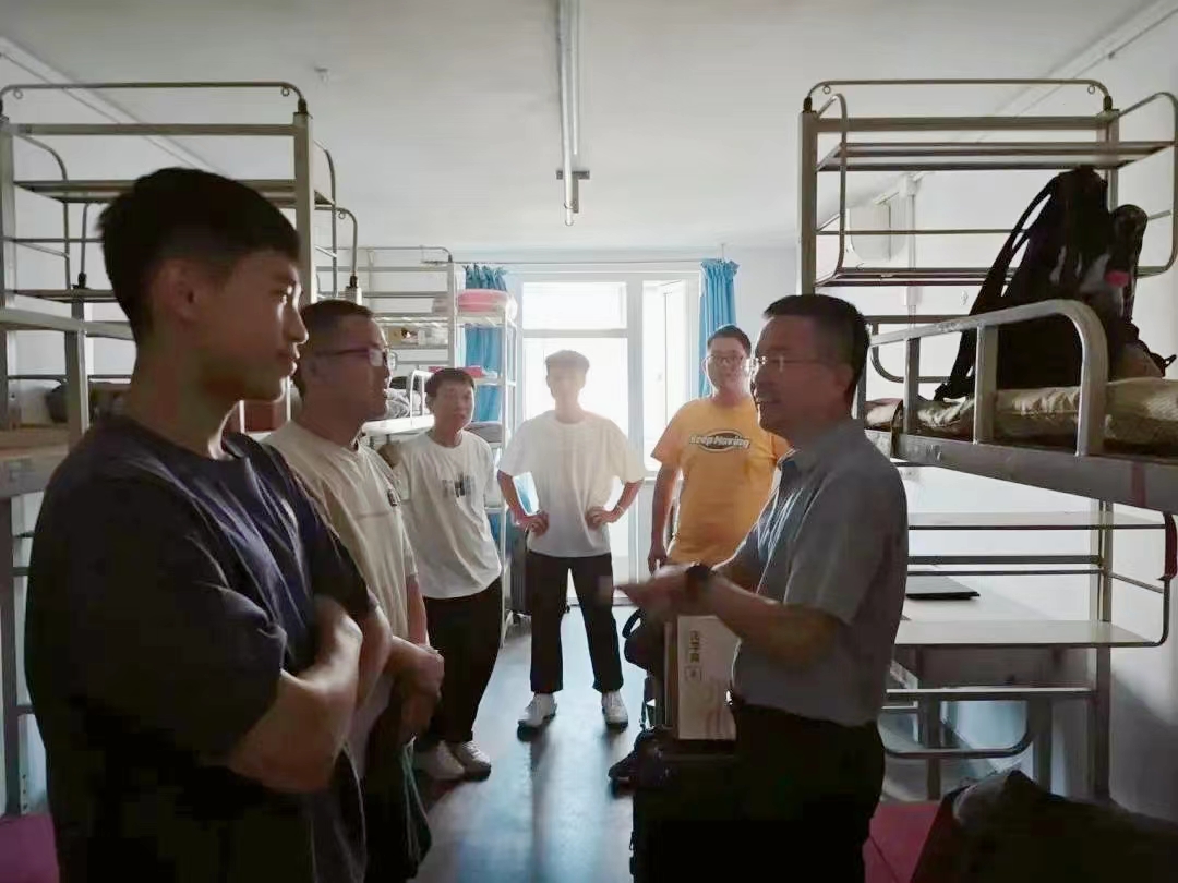 29日上午,学院党委书记张立学与辅导员走访新生宿舍,对报到当日的新生及家长进行慰问,了解新生初入大学校园的感受及需求。