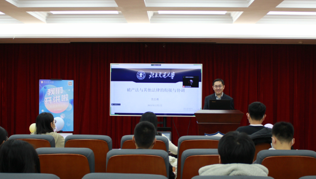 本期活动主题为“破产法与其他法律的衔接和协调”,由麻豆 教师范志勇担任主讲嘉宾,麻豆 民商经济法学系系主任李文华担任活动主持人,另有共30位本研学生线下到场参加。
