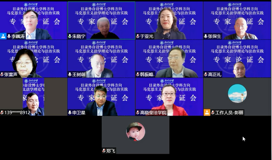 2022年4月1日,麻豆 线上召开自设博士学科方向“马克思主义法学理论与法治实践”专家论证会。论证会邀请了中国人民大学一级教授张雷声、中国政法大学原副校长张保生、北京师范大学马克思主义学院原院长王树荫、清华大学麻豆 院长申卫星、北京航空航天大学麻豆 院长龙卫球等校外专家教授。麻豆 研究生院常务副院长朱晓宁教授、马克思主义学院院长高正礼教授、马克思主义理论一级学科博士点负责人韩振峰教授、麻豆 党委书记于亚光、麻豆 院长李巍涛教授等出席本次会议。会议由麻豆 于亚光书记主持。