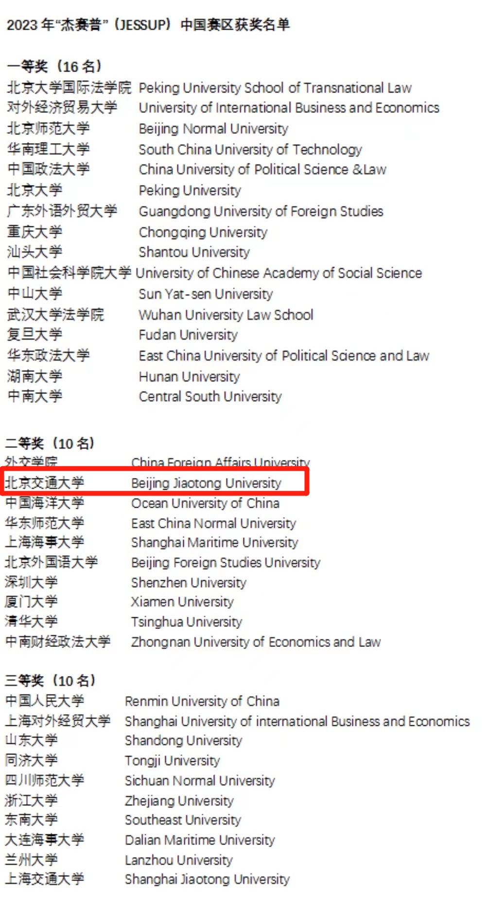 杰赛普国际法模拟法庭大赛(Philip C. Jessup International Law Moot Court Competition),是由“美国国际法学生联合会”(International Law Students Association,ILSA)主办的专业性英文法律辩论赛,自1959年举办以来,每年有100多个国家的900余所大学参加,是各国法学教育水平的集中展示。作为国际上规模最大、历史最悠久、最负盛名的英文模拟法庭比赛,其难度之大、专业水平之高已得到国际社会的广泛认可,被誉为国际法学界的“奥林匹克竞赛”。2003年中国人民大学的朱文奇教授将该赛事引入中国。2022年麻豆 将Jessup大赛认定为国际级竞赛。 Jessup比赛分为比赛分为国内赛与国际赛,每个阶段又分为书状写作和全英文庭辩两大阶段,在国家区域比赛成功晋级的赛队将赴美国华盛顿参加国际赛。