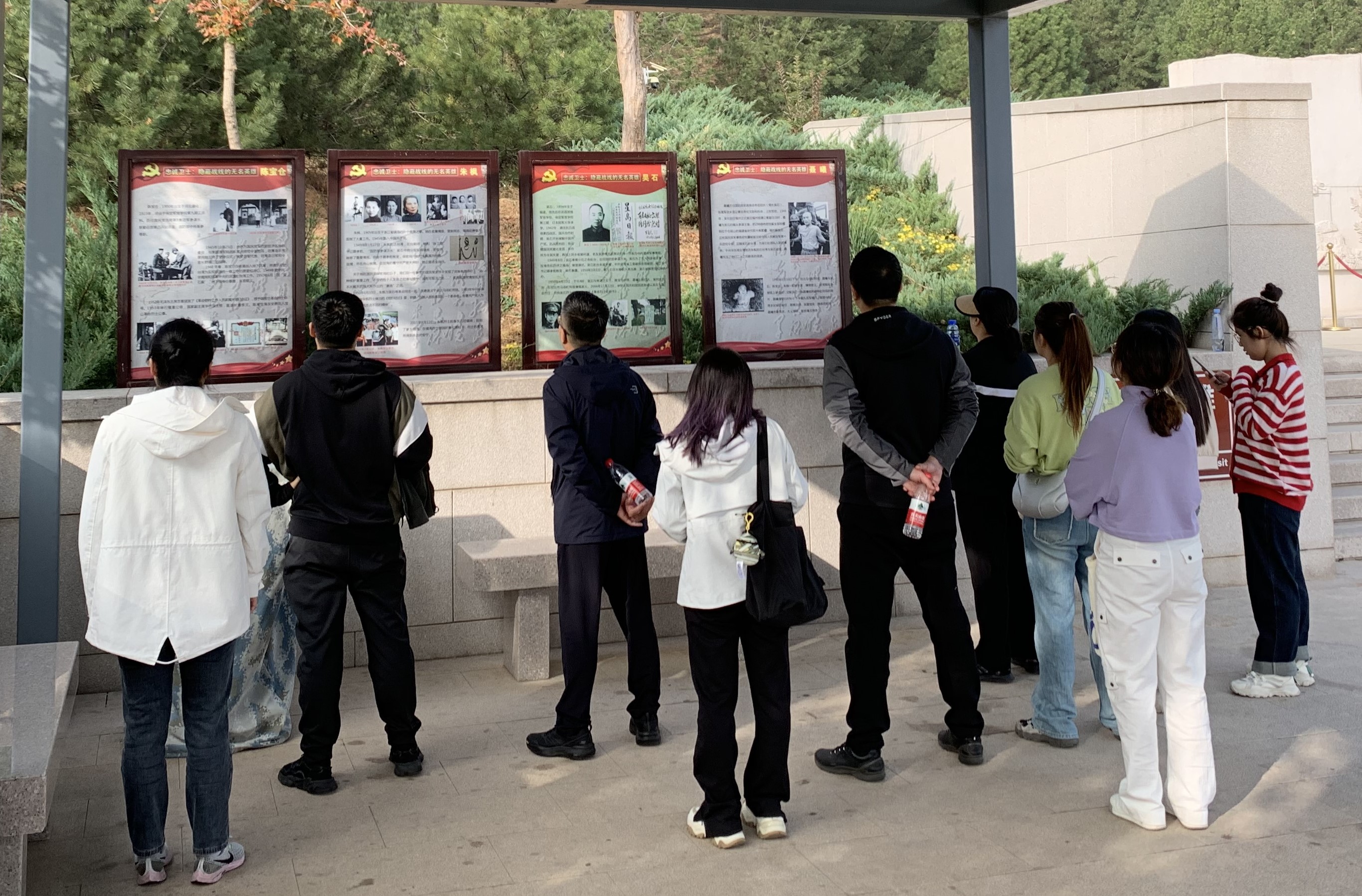 在西山无名英雄纪念广场,机关党支部宣传委员刘一瑾为大家讲解了无名英雄纪念碑的历史背景和烈士事迹,随后大家集体瞻仰了镌刻在花岗岩墙壁上的烈士英名,学习了隐蔽战线先烈的英雄事迹,深切缅怀那些为革命事业英勇献身的无名英雄们。