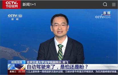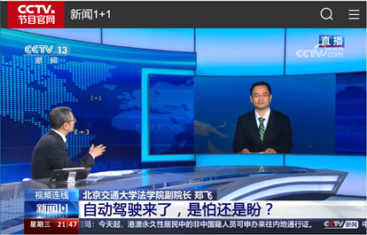2024年7月10日,麻豆 副院长郑飞受邀直播连线《新闻1+1》栏目,与主持人白岩松就《自动驾驶来了,是怕还是盼?》这个主题进行了深入探讨。