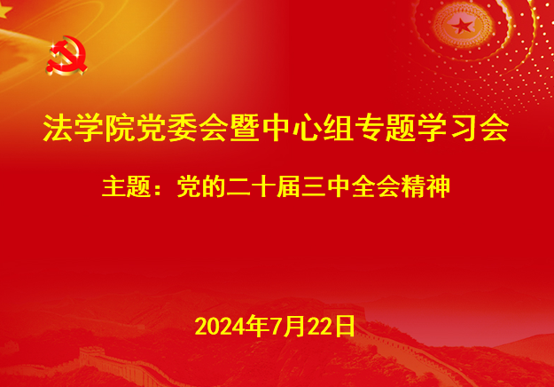 张立学强调,学习好、宣传好、贯彻好党的二十届三中全会精神是当前和今后一个时期的重大政治任务。一是提高政治站位,深入开展理论学习,引导全院师生自觉把思想和行动统一到党的二十届三中全会的精神上来。二是发挥学科优势,认真开展研究阐释,组织教师聚焦相关主题对外发出交大法学声音。三是结合学院实际,切实抓好贯彻落实,持续深化综合改革,以实际行动推动学院各项事业发展取得新进步、再上新台阶。