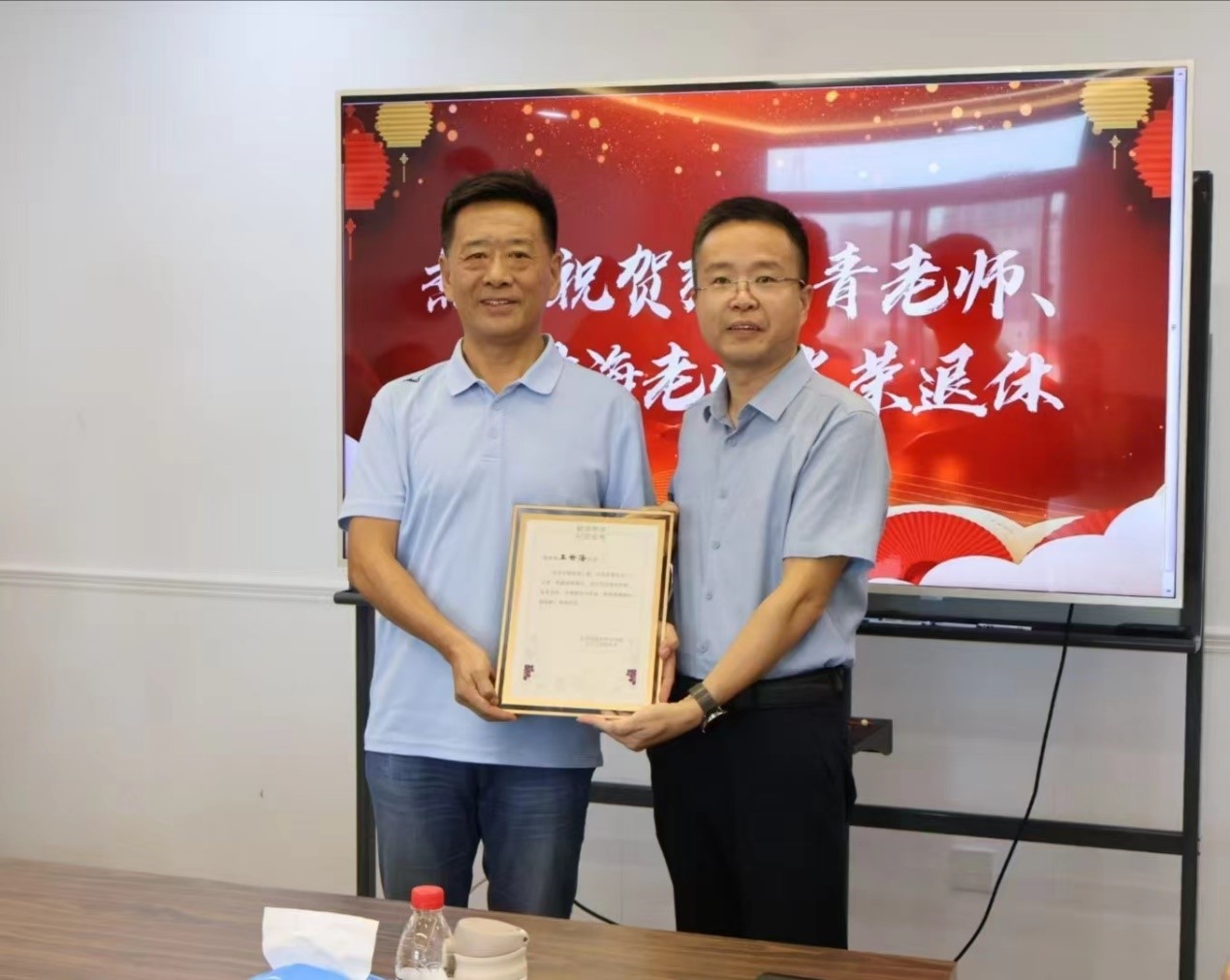 9月10日上午,麻豆 在思源西楼712会议室为张长青老师、王世海老师隆重举行荣休仪式。出席本次仪式的有麻豆 全体院领导,优秀院友代表、土建学院党委副书记陈博,各系所教师代表及学院机关全体管理干部。