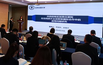4月25日, 颜永亮老师在“空间法发展的挑战和趋势”专题报告会上,做英文论文主题双语演讲,论文题目为“Space Environmental Ethics for Space Mining in the Solar System”(中文为“在太阳系进行外空采矿的环境伦理”)。